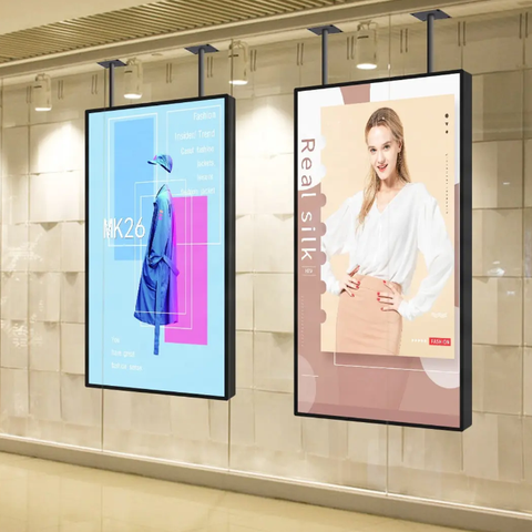49 дюймов двухсторонний дисплей ультра тонкий цифровой вывески подвесной кронштейн регулируемая высота розничный магазин рекламный экран